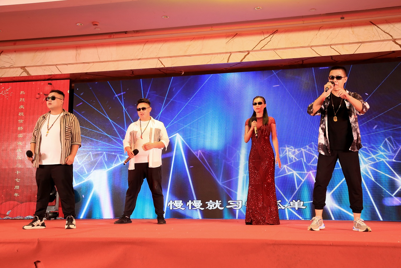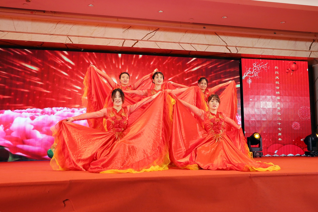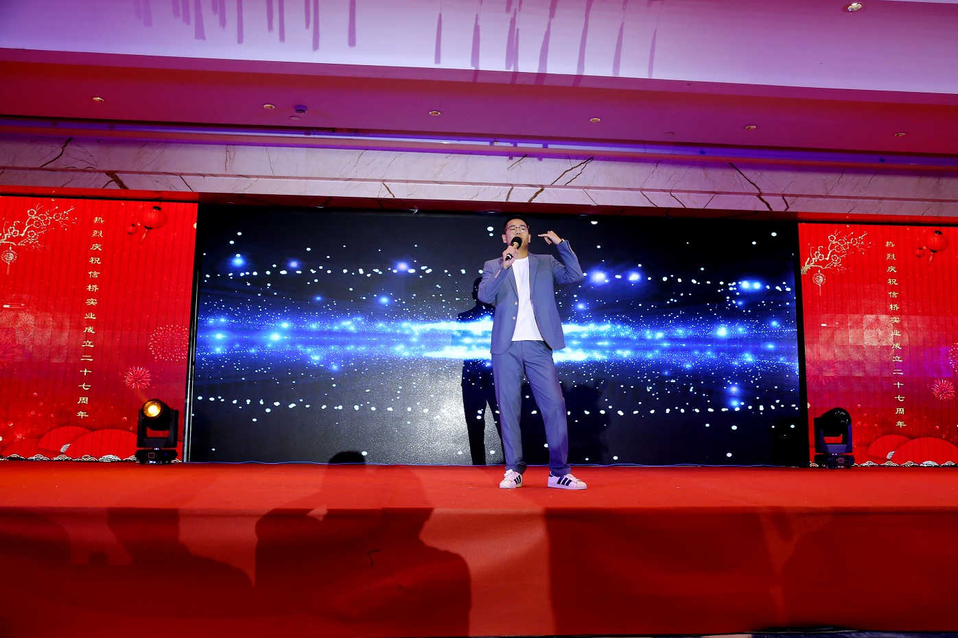 此次慶典晚宴參加人員除了信橋全體員工之外,還有部分老領導和老朋友,大家共同分享了信橋二十七周年的喜悅與精彩。八號上午,慶典開始之前,演員們辛勤排練,燈光師、音響師共同配合,所有人為了晚會都在努力。下午4點58分,晚會正式開始,全體員工與領導集體合影,信橋隊伍不斷在擴大。今年的晚會添加新的互動方式,采用了直播和紅包雨的新形式,是信橋周年慶典的一次新的嘗試。