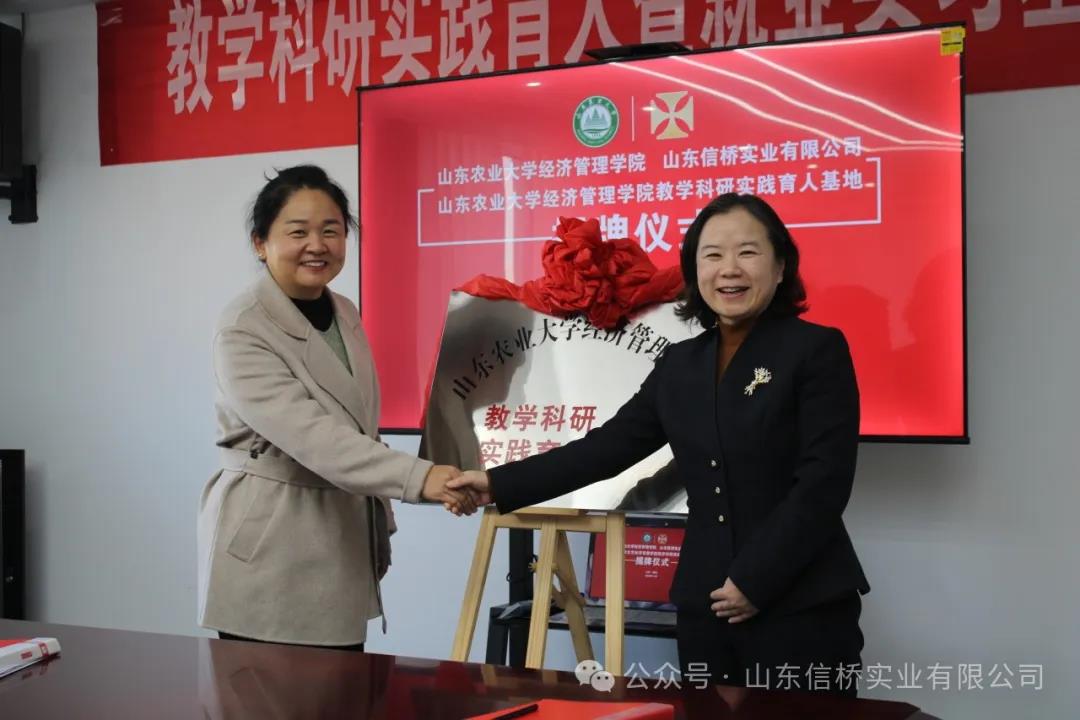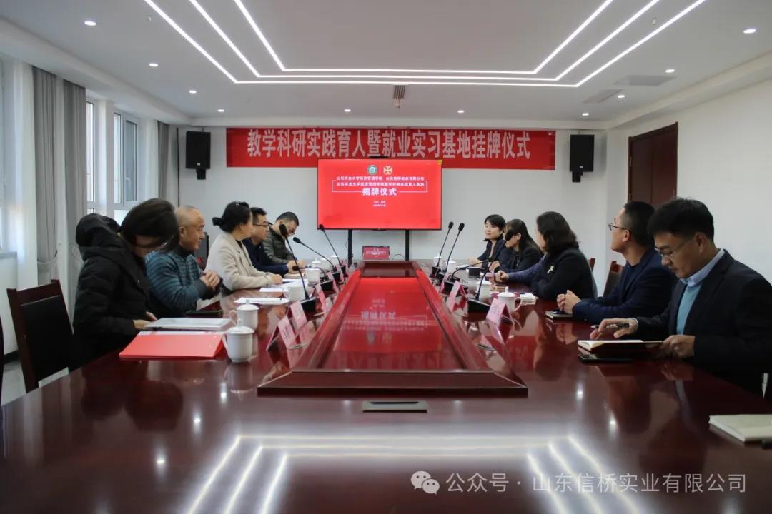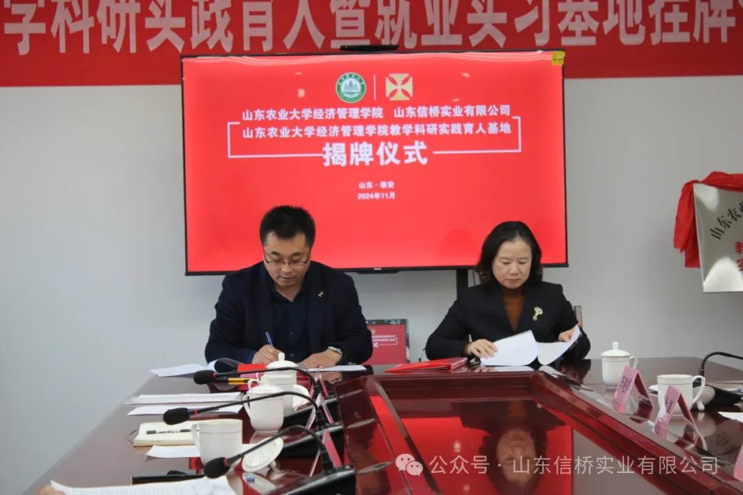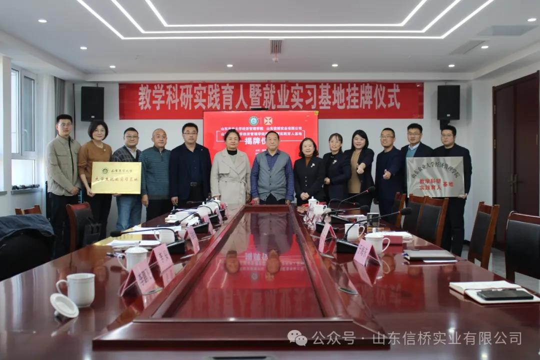 11.28日,山東農(nóng)業(yè)大學經(jīng)管學院與山東信橋?qū)崢I(yè)有限公司在信橋公司舉行了教學科研實踐育人暨就業(yè)實習基地掛牌儀式。