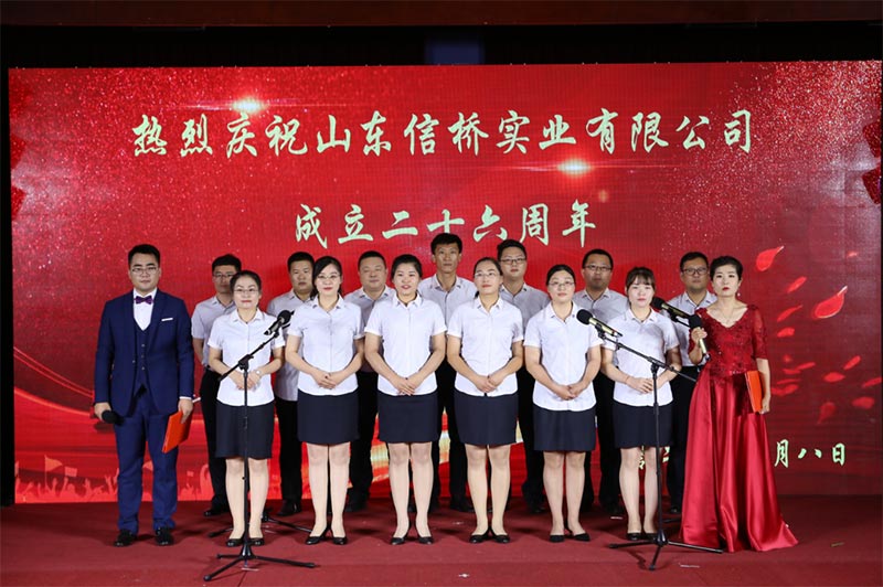 On August 8, 2020, the 26th anniversary of Shandong Xinqiao Industrial Co., Ltd. was ceremoniously held in Tai'an Diyuan hotel. All kinds of model elites, as well as leaders at all levels, colleagues, new and old friends who have given great love to Xinqiao in the past 26 years, gather here to share the glory and happiness belonging to everyone together with all the employees who have made hard work for the company!